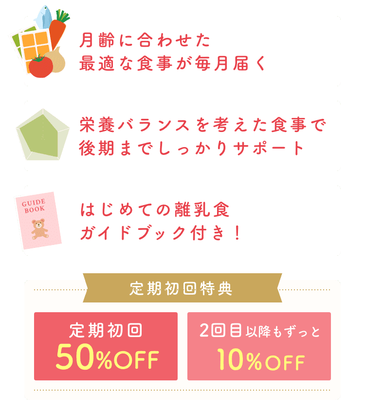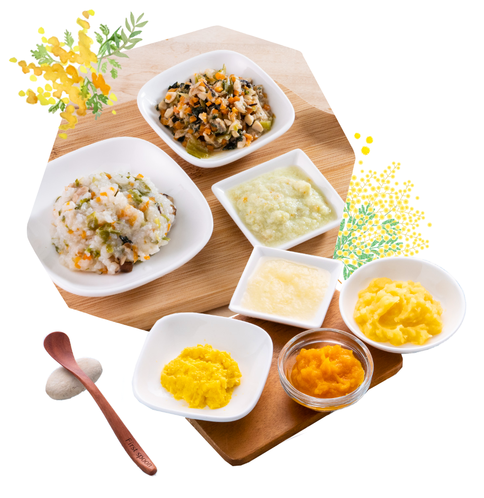 長年、子どもたちの給食食材を作り続けてきた私たちが作る離乳食。生後5ヶ月からスタートする18ヶ月のプランを作りました。